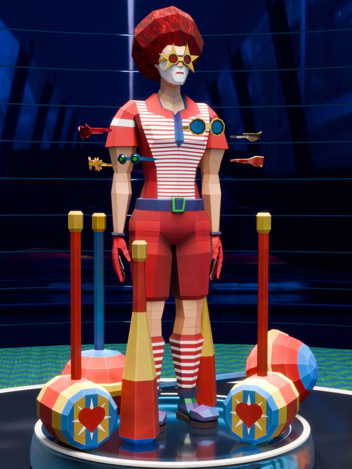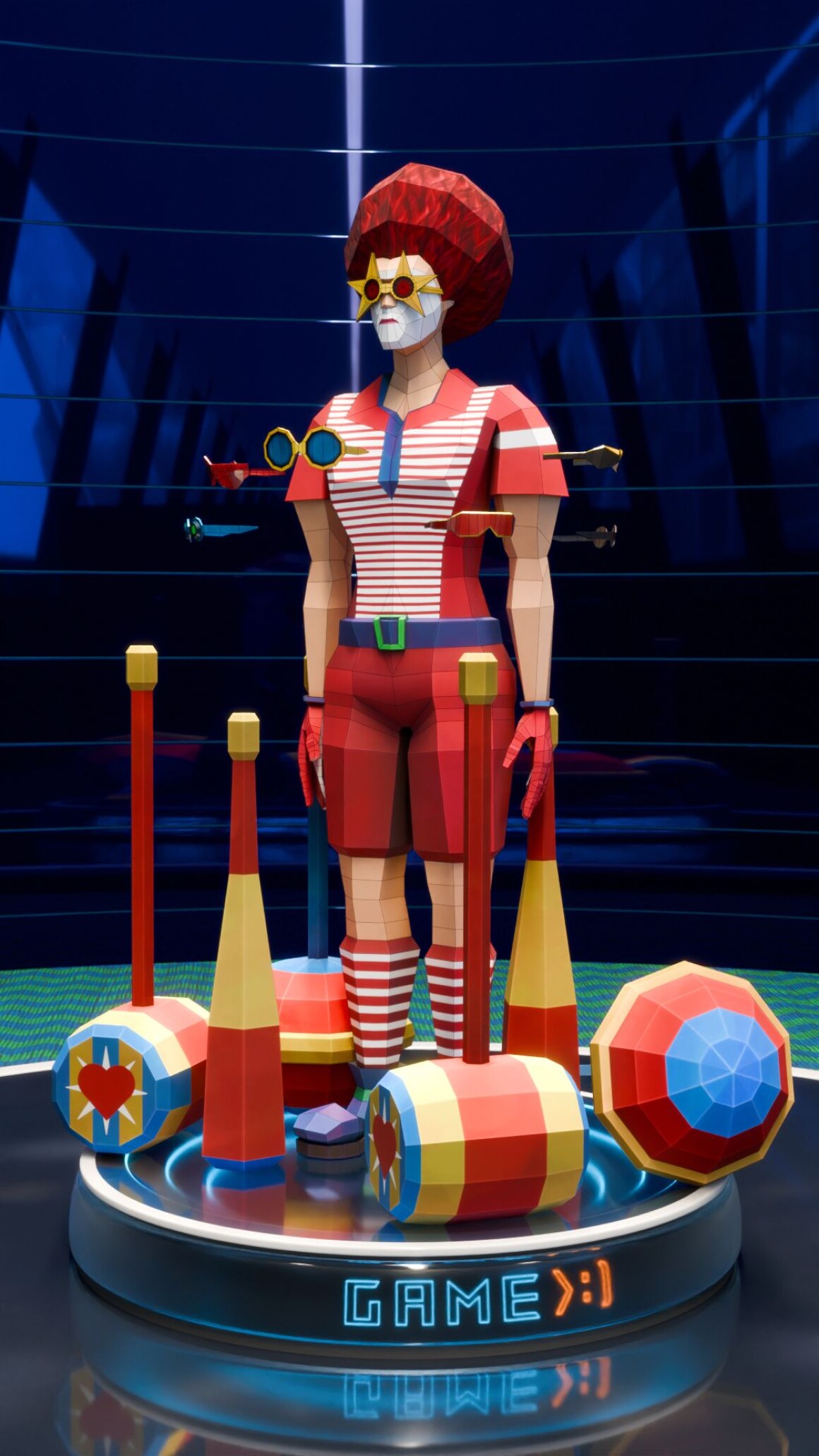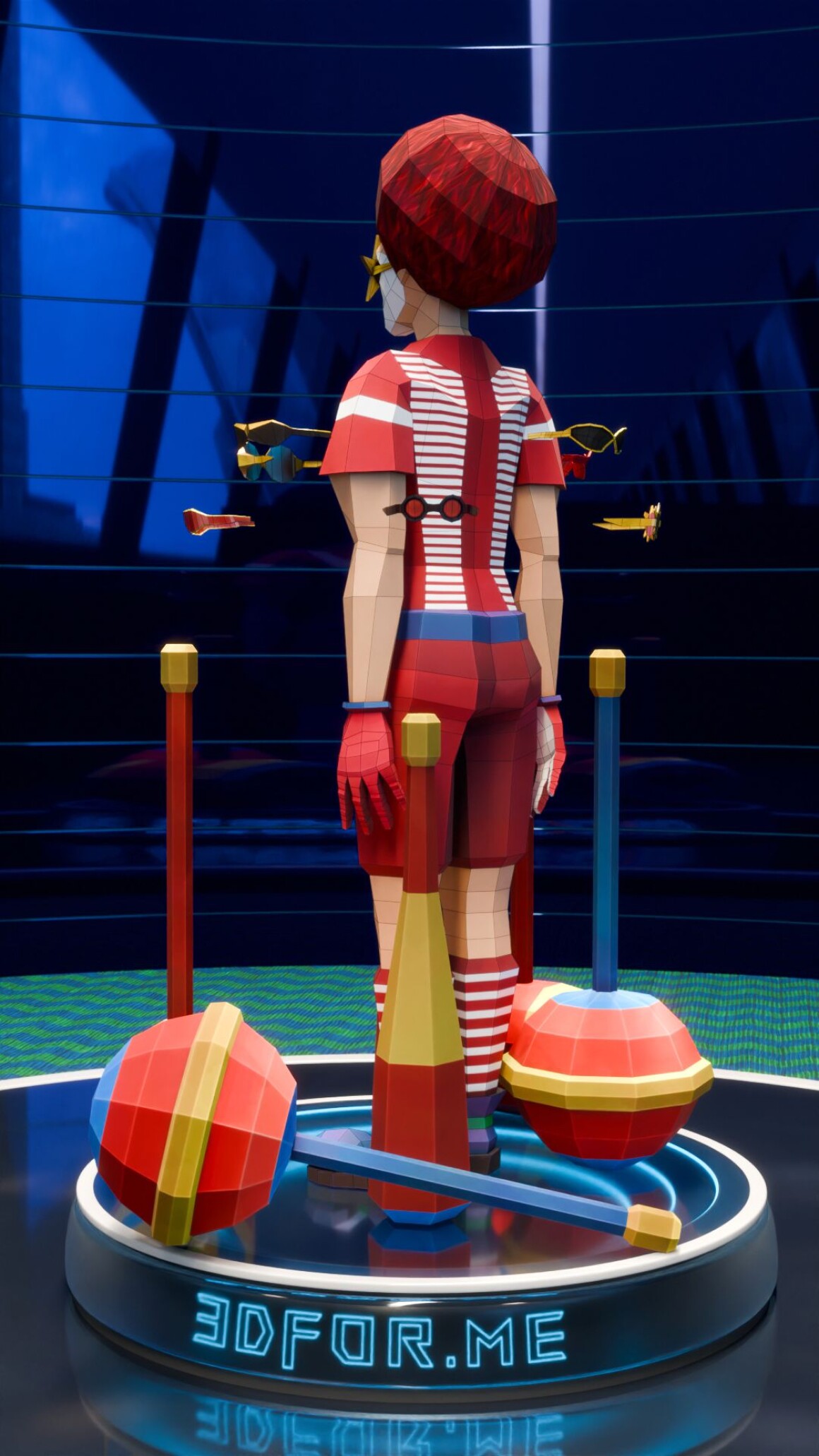Стилизованный 3D персонаж Боевой Клоун создан без нейросетей (NoAi) для игр под iOS и Androia и для других игровых платформ. Это полностью ручная разработка от автора: придуман дизайн, смоделировано, создан и установлен гуманойдный риг (Rig или скелет), выполнены все UV развёртки и нарисованы текстуры. Можно купить для своего игрового проекта. Тело персонажа имеет единую сетку (меш) и один материал. Тело персонажа составляет - всего лишь 2442 треугольника, причёска как отдельный меш сетка с одним материалом состоит из 140 треугольников, под причёской голова цельная. В комплект входит 9 уникальных очков уже привязанных к ригу, все очки имеют одну UV развёртку и один общий материал. У очков следующее количество треугольников: 1) 72, 2) 364, 3) 436, 4) 144, 5) 228, 6) 344, 7) 352, 8) 200, 9) 480. Также в комплекте набор оружия: 2 кувалды, 2 биты и 2 кувалды в видео леденцов. Весь набор оружия имеет единую UV развёртку и один материал, Rig (скелет) персонажа гуманойдный и отлично подойдёт для игрового движка Unity под тип скелета Humanoid и Generic. У героя по пять пальцев на руке, все кости Героя корректно сгибаются включая все пальцы рук. Каждая единица оружия в отдельном FBX файле, моделька героя (тело, прическа и набор очков) в файле формата FBX. Все текстуры в разрешении 2048 х 20248, формат PNG. В комплекте текстур: базовая (цветная), металлик, шероховатость (Roughness), карта высот, карта нормалей (Normal), карта теней (AO - Ambient Occlusion), текстура свечения (Emission). Объём FBX фалов оружия - 112 кб, FBX файл героя 921 кб, общий объём текстур - 13,5 мб. Всё упаковано в архив WinRAR (.rar) - 13,9 мб, для работы распаковать архив. Анимации в комплект не входят, можно приобрести отдельно. Всё перед продажей протестировано и проверено, включая тест в Unity. За уникальной кастомизацией Боевого Клоуна под свой игрового проект можете дополнительно обратиться к Автору. Другие детали ниже…