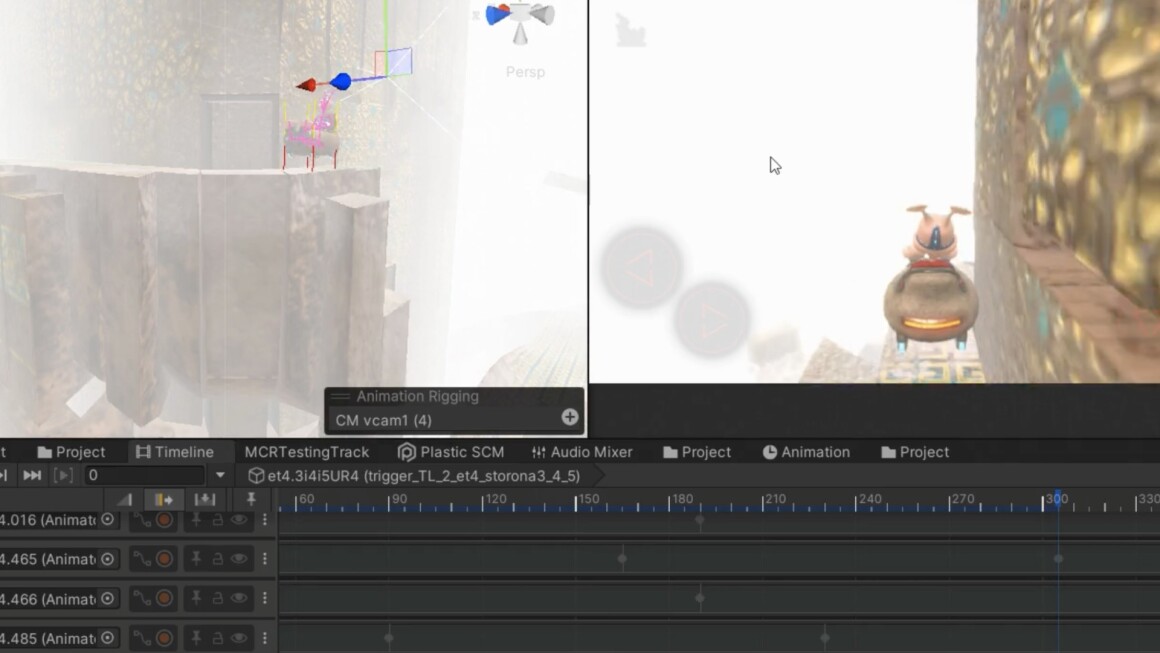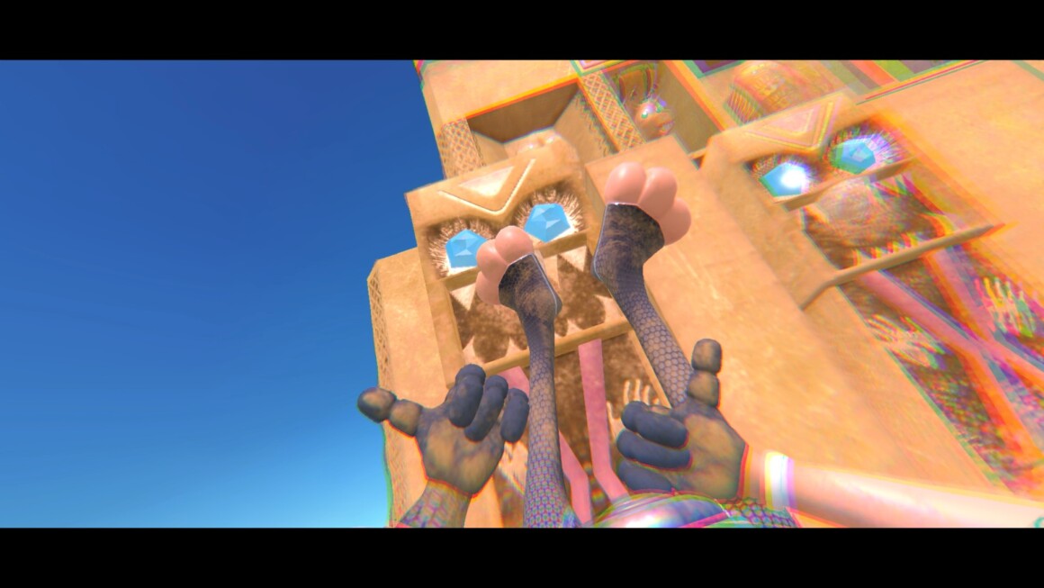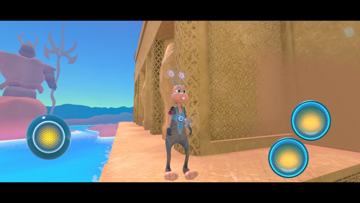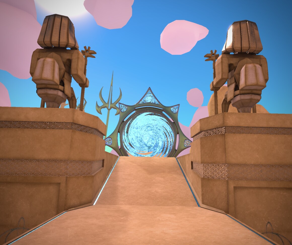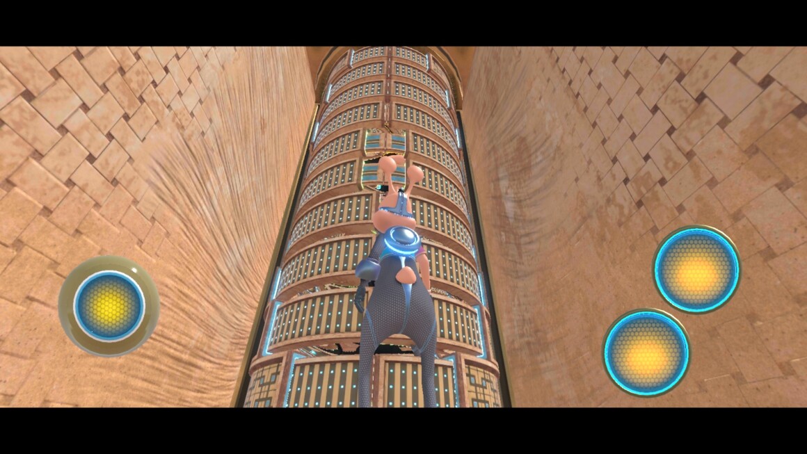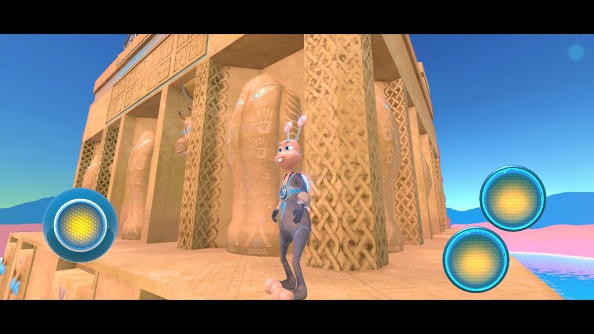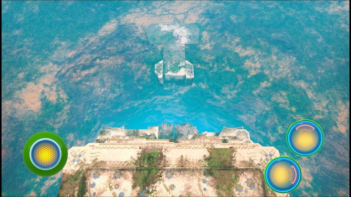 Пирамида была самостоятельно собрана из множество 3D деталей c возможностью её разрушения. Для обрушения пирамиды анимировалась каждая деталь, анимация ручная. Текстуры пирамиды рисовались мной тоже ручным способом мышкой. Детализация текстур на вырост, что позволяет портировать и для ПК и для приставок. Внутри пирамиды расположена гигантская статуя, которую возможно увидеть в процессе прохождения :).