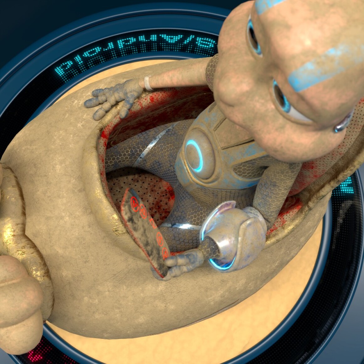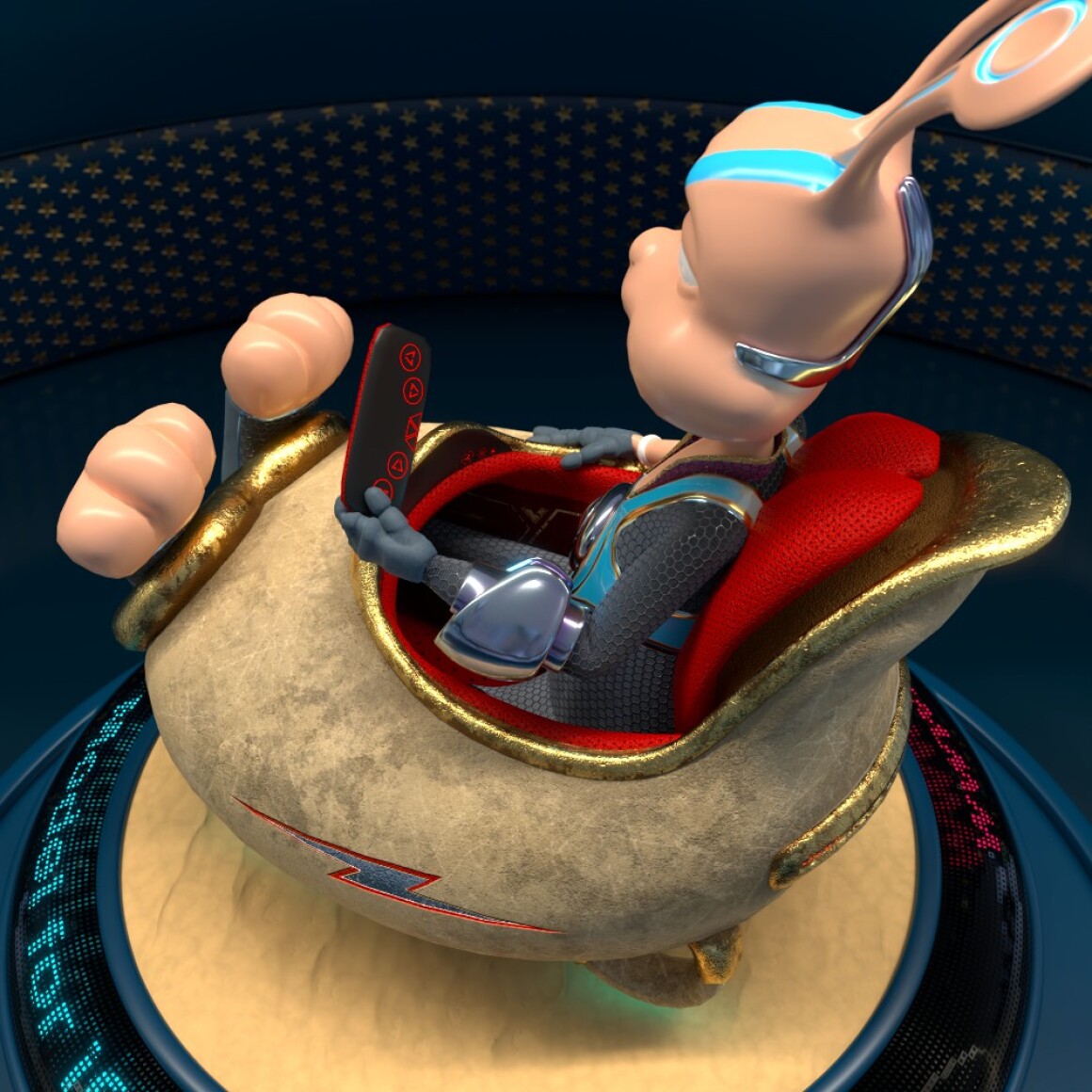 Это 3D рендер версия Героя Чипа в болиде машинке:). Моделька реализована в игре с оптимизированными текстурами, не теряя образ. Дизайн округлый, слегка под ретро авто с элементами футуризма :). Отверстия для ног сделаны конечно же по плану, в игре им добавлена физика для естественных реакций на столкновения. У героя в руках экран руль, кнопки на котором аналогичны кнопкам на твоём телефоне во время игры :).