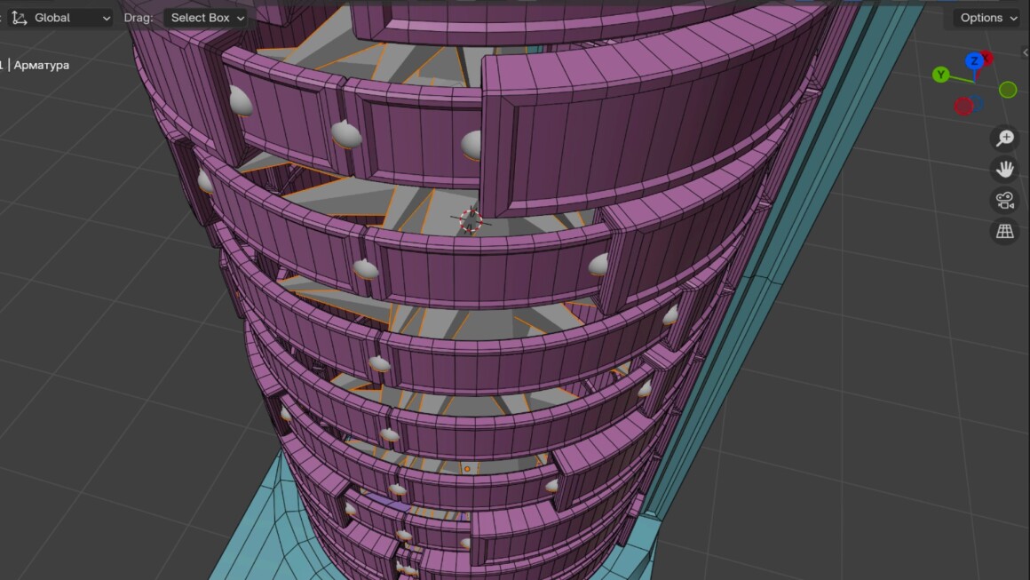 . . . Эта 3D модель также вошла в игру. Видно, что сейчас 3D без текстур. Каждая деталька пирамиды потом анимировалась ручным методом. Всё в итоге подгонялось, иначе можно сделать такую игру, которую не пройти :). И так с каждой моделькой: продумываешь, выдумываешь, прикидываешь, моделируешь, подготовительные работы для текстур, различные детали попутно, текстурируешь, правки и перенос в Unity, тестируешь, если что не так, топовтор правки и до нужного результата. Если очень коротко :)